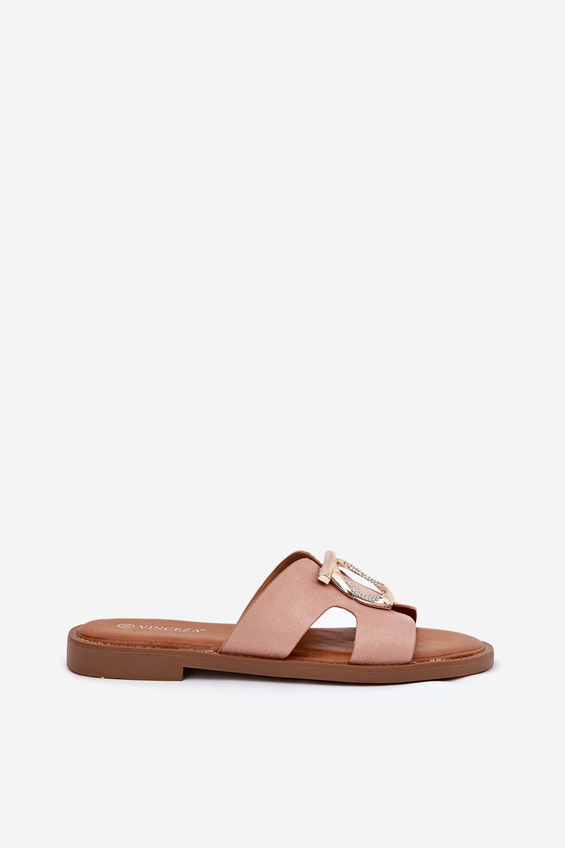 Klapki Damskie Na Płaskim Obcasie Z Ozdobą Vinceza 17381 Beżowe