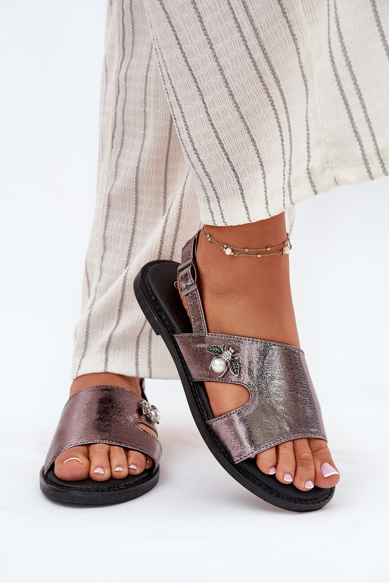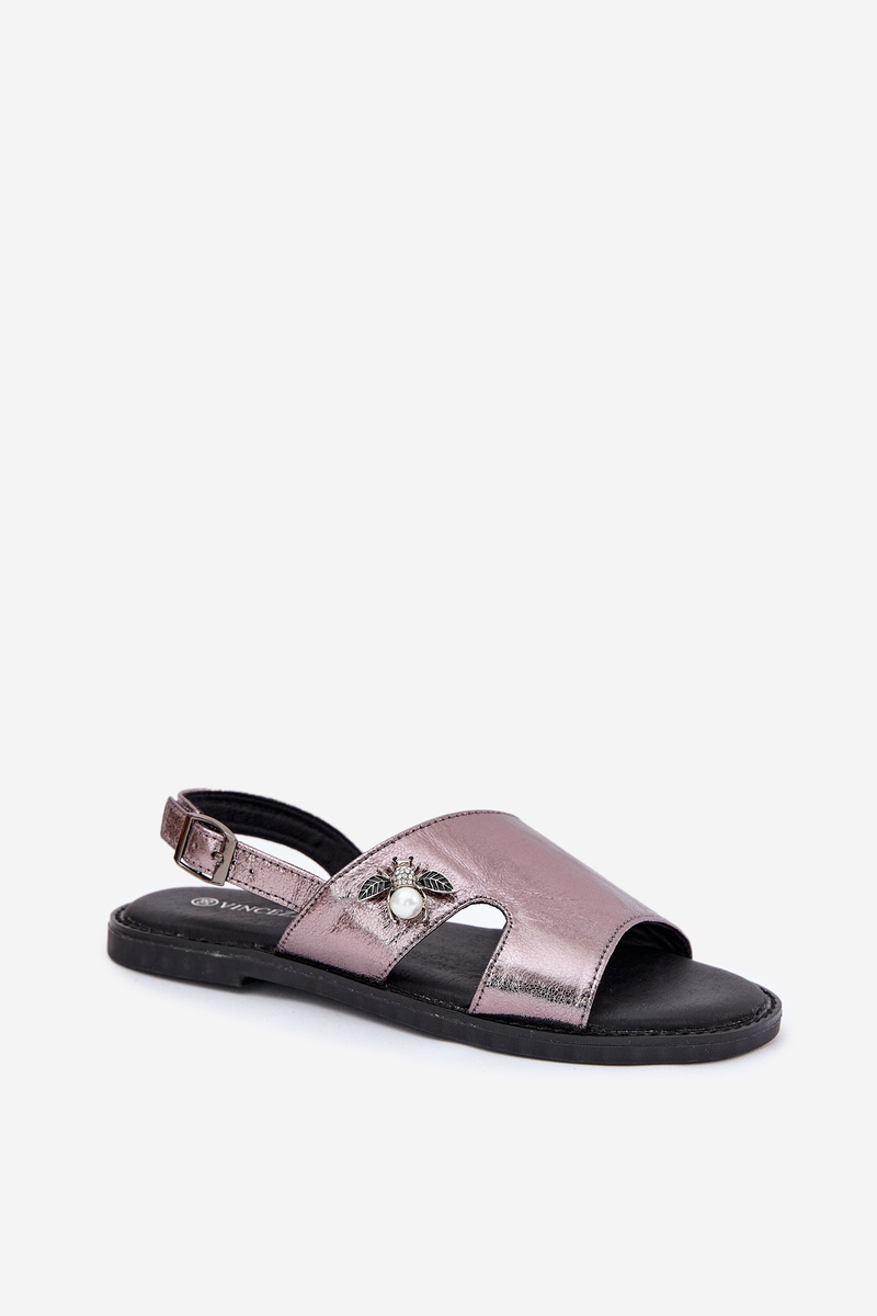 Sandały Damskie Płaskie Z Ozdobnym Detalem Vinceza 17378 Srebrne