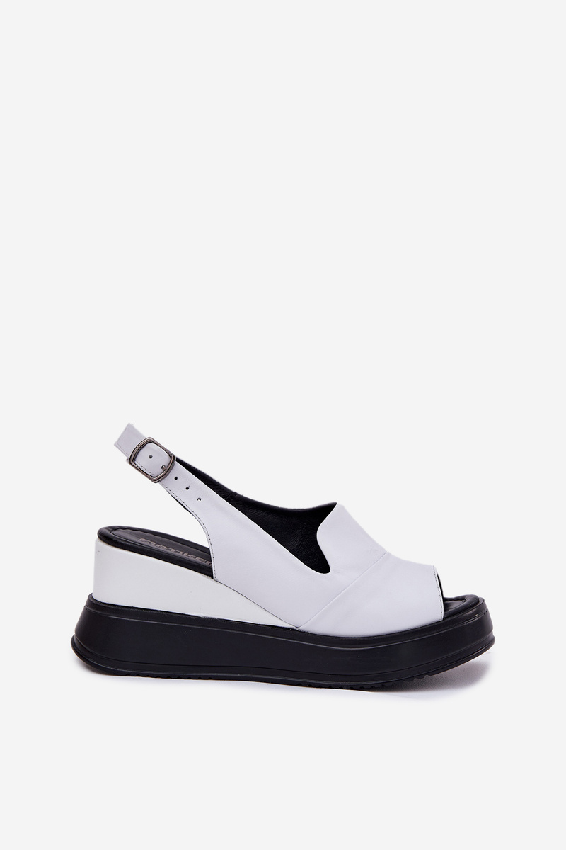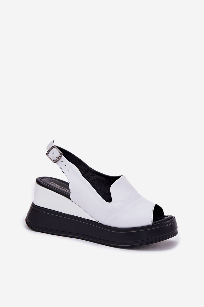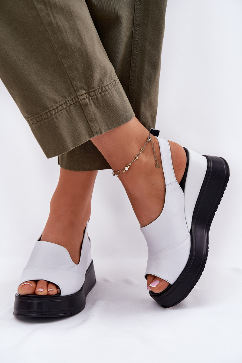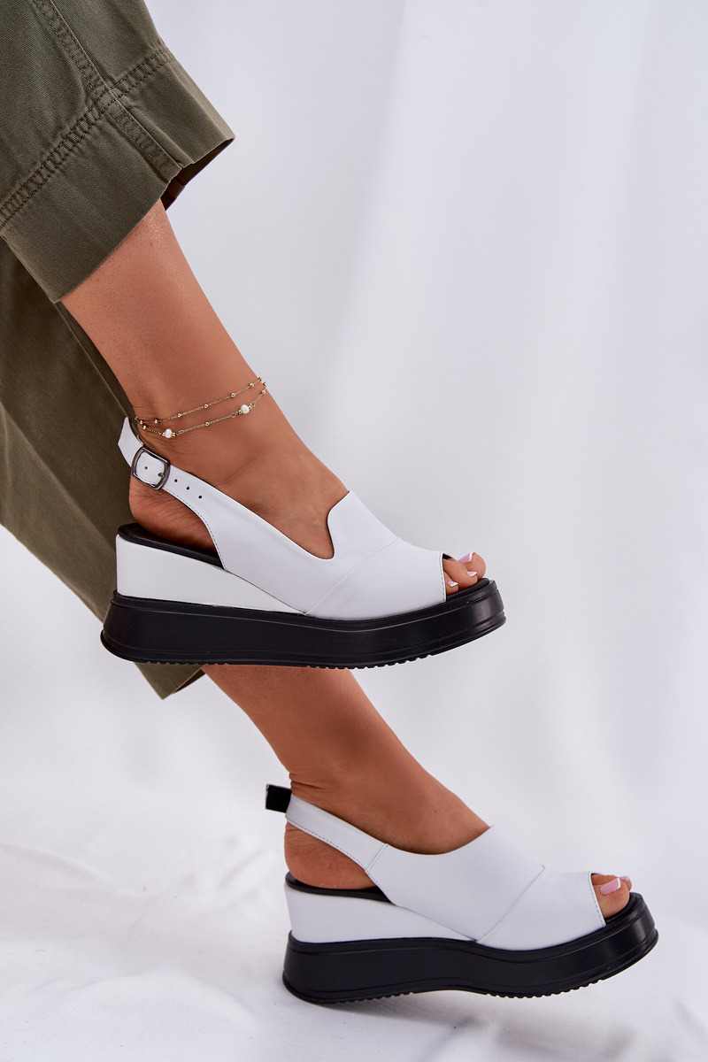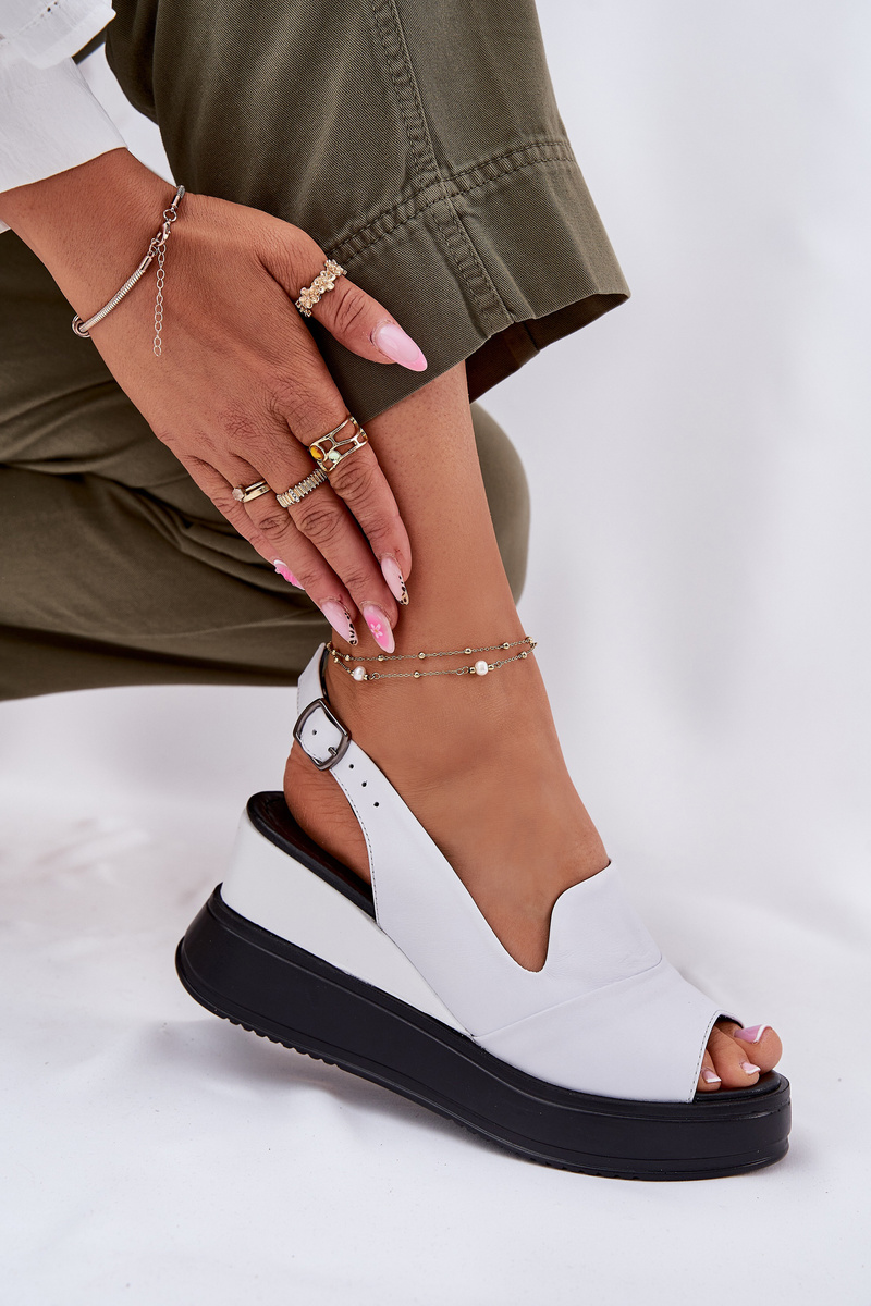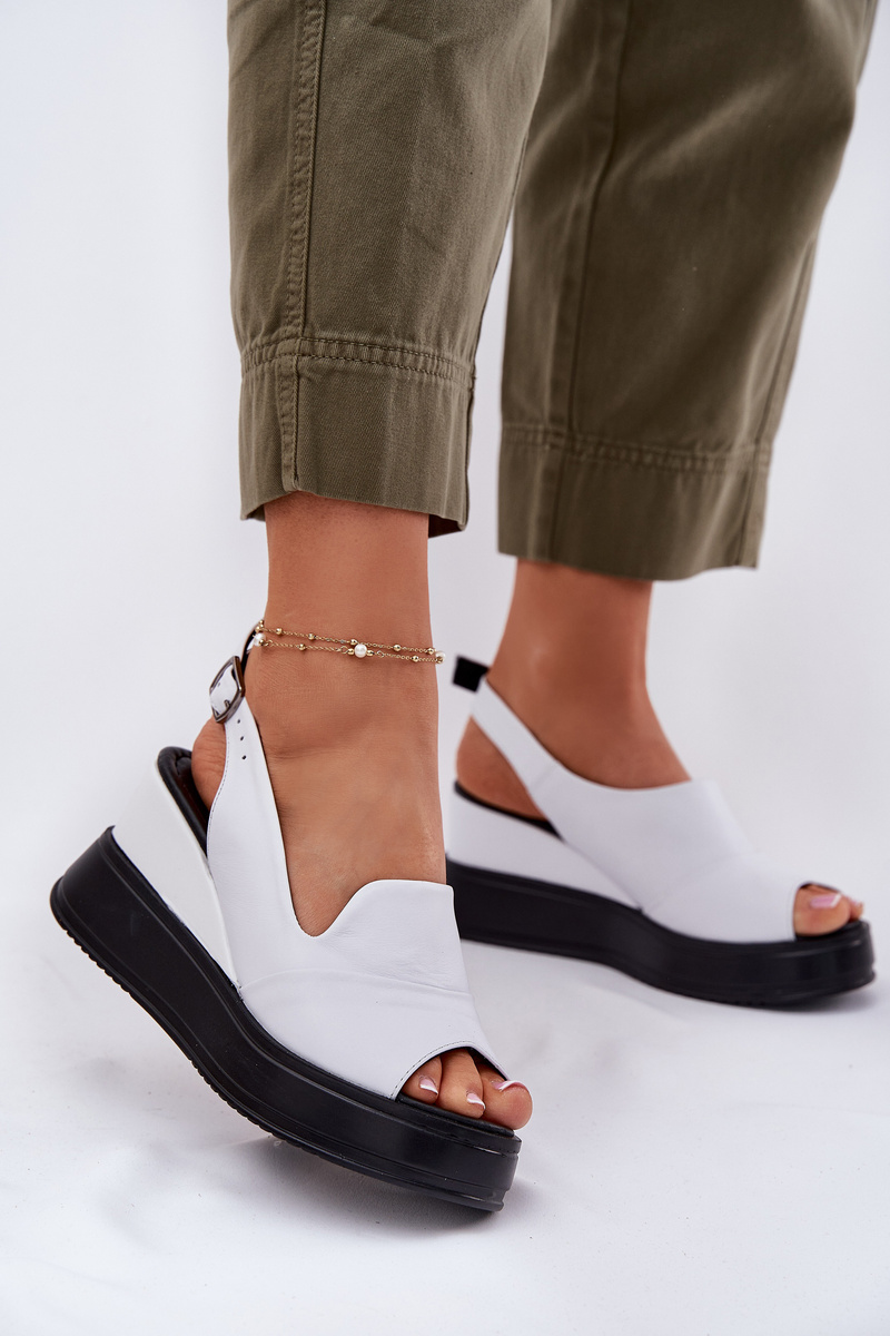 Skórzane Damskie Sandały Na Koturnie Artiker 52C0483 Białe