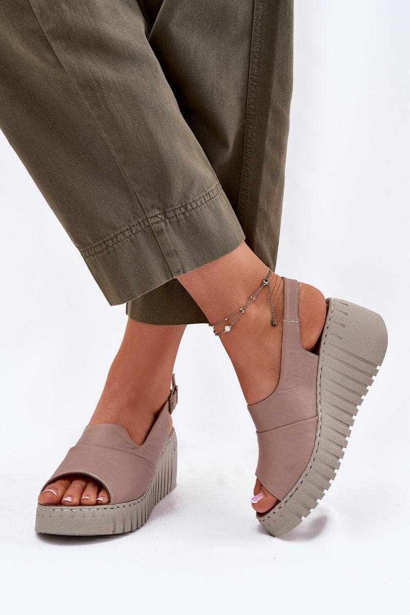 Sandały damskie z naturalnej skóry to elegancka i wygodna propozycja na letnie dni. Model ten zapinany jest na klamrę z regulowanym paskiem, co pozwala na idealne dopasowanie do stopy. Buty osadzone są na koturnie i platformie ze żłobieniami, co zapewnia stabilność oraz komfort przez cały dzień. Dodatkowo bardzo miękka wkładka sprawia, że każdy krok jest lekki i wygodny. To połączenie stylu, komfortu i funkcjonalności, które doskonale uzupełni Twoje letnie outfity. Przy wyborze rozmiaru prosimy sugerować się tabelą rozmiarów.
