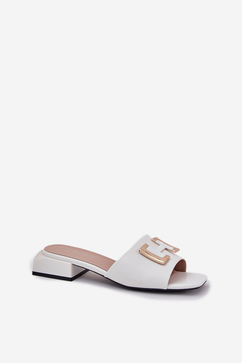 Eleganckie Klapki Damskie Na Klocku Ze Złotym Detalem Vinceza 62229 Białe