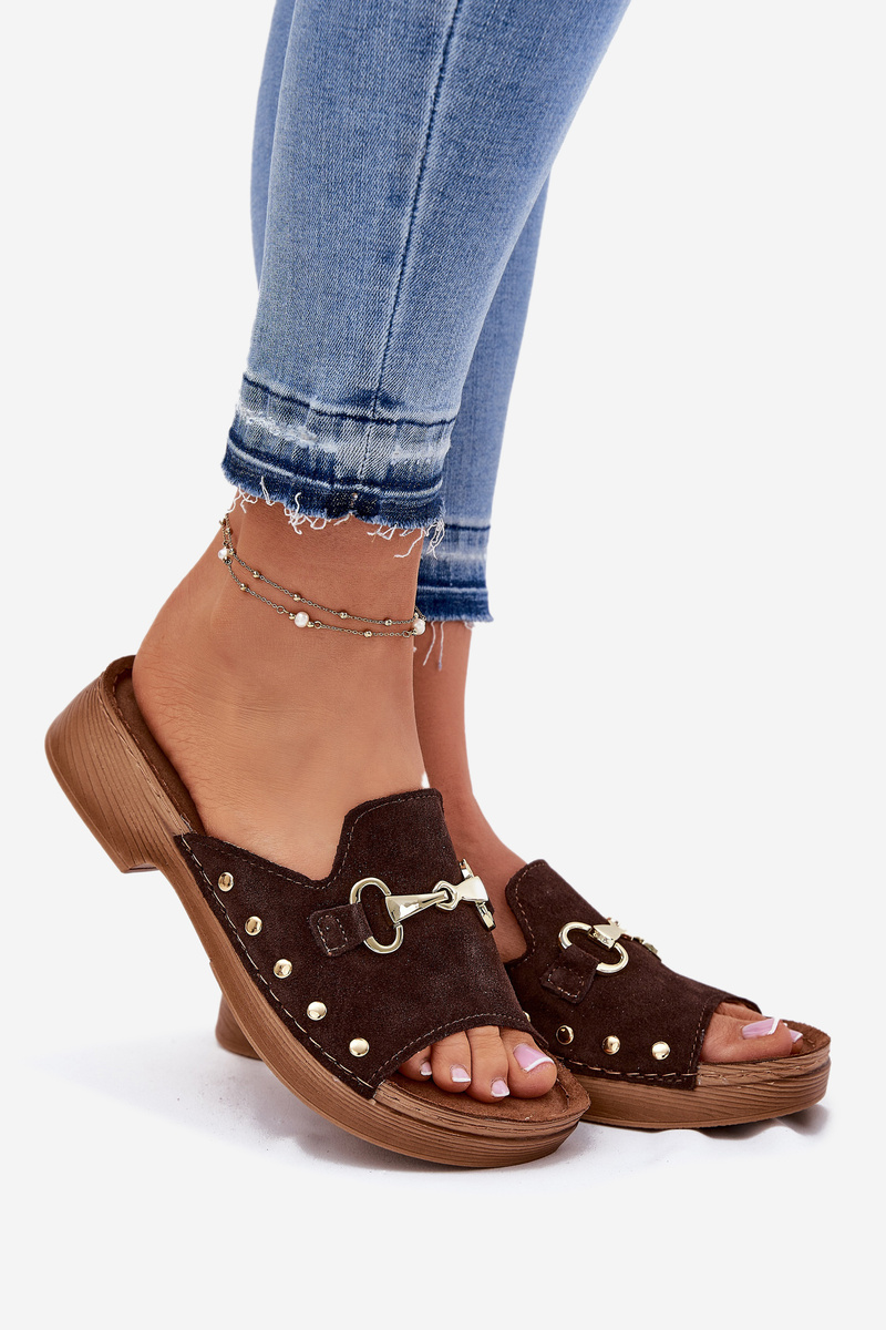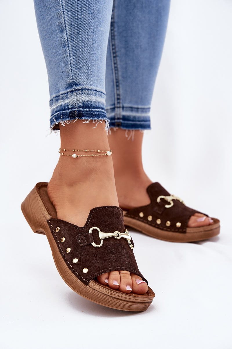 Zamszowe Klapki Damskie Inblu TF0002KU Brązowe