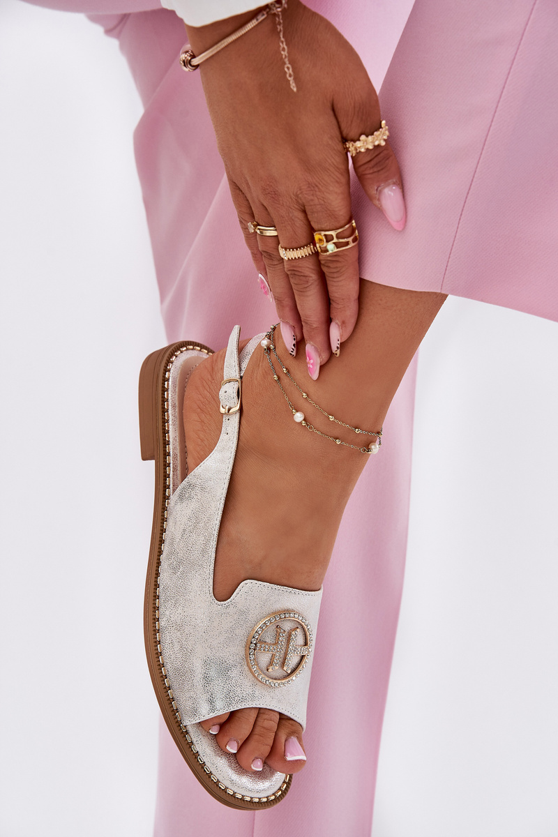 Sandały Damskie Na Płaskim Obcasie Z Ozdobą S.Barski KV51-002 Srebrne