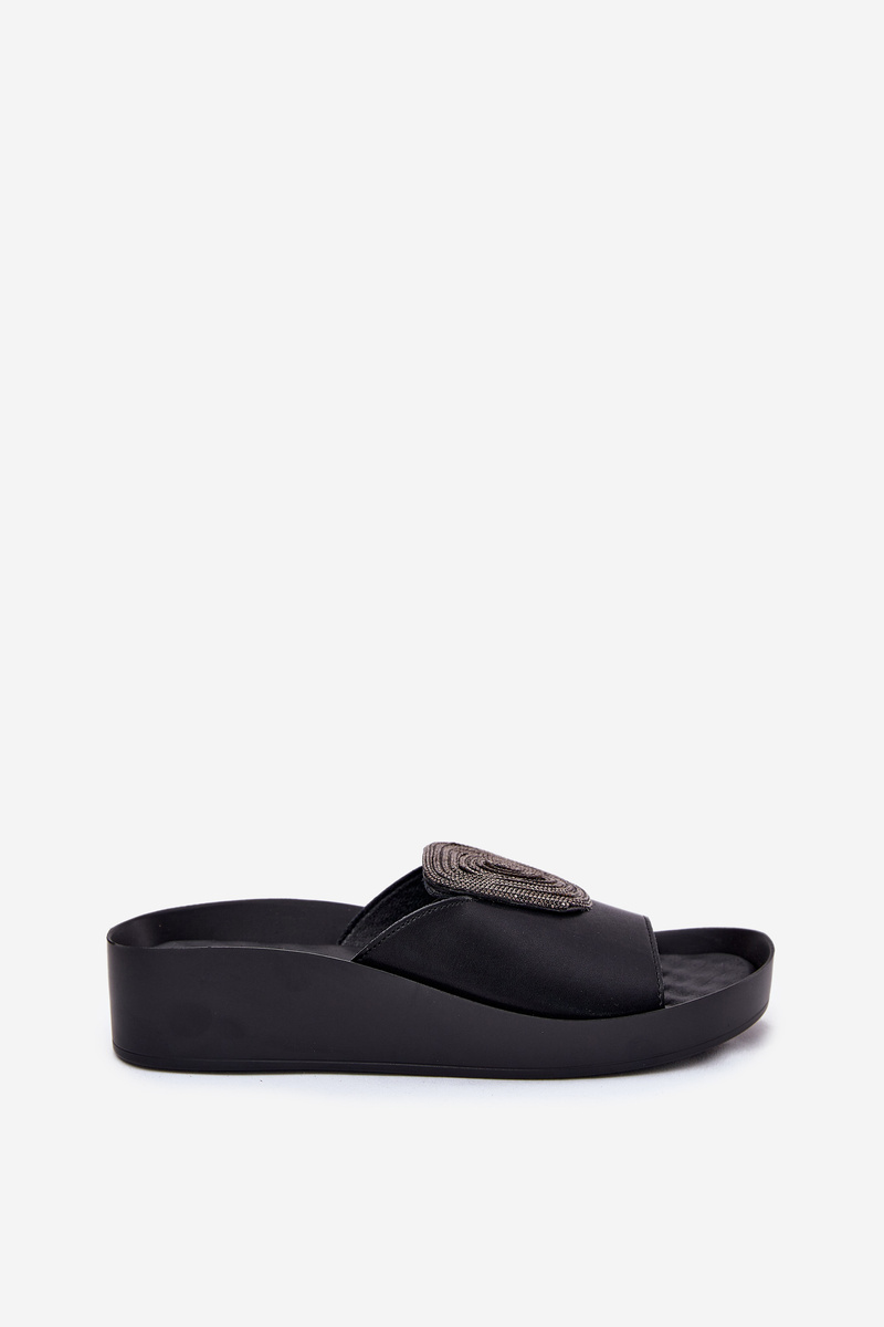 Skórzane Damskie Klapki Z Ozdobą KV51-028 Czarne