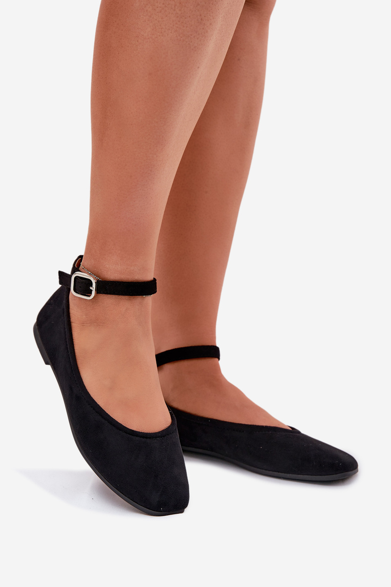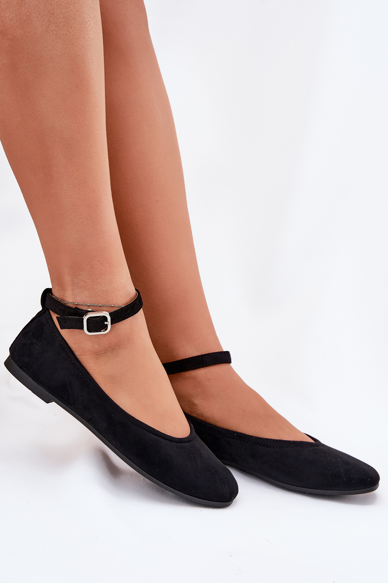 Eko Zamszowe Baleriny Z Paskiem I Klamrą Czarne Deomira