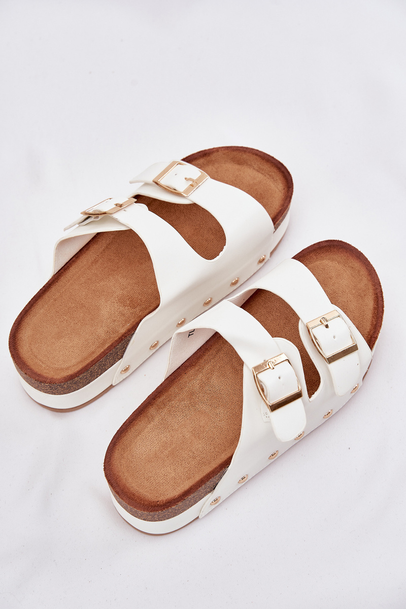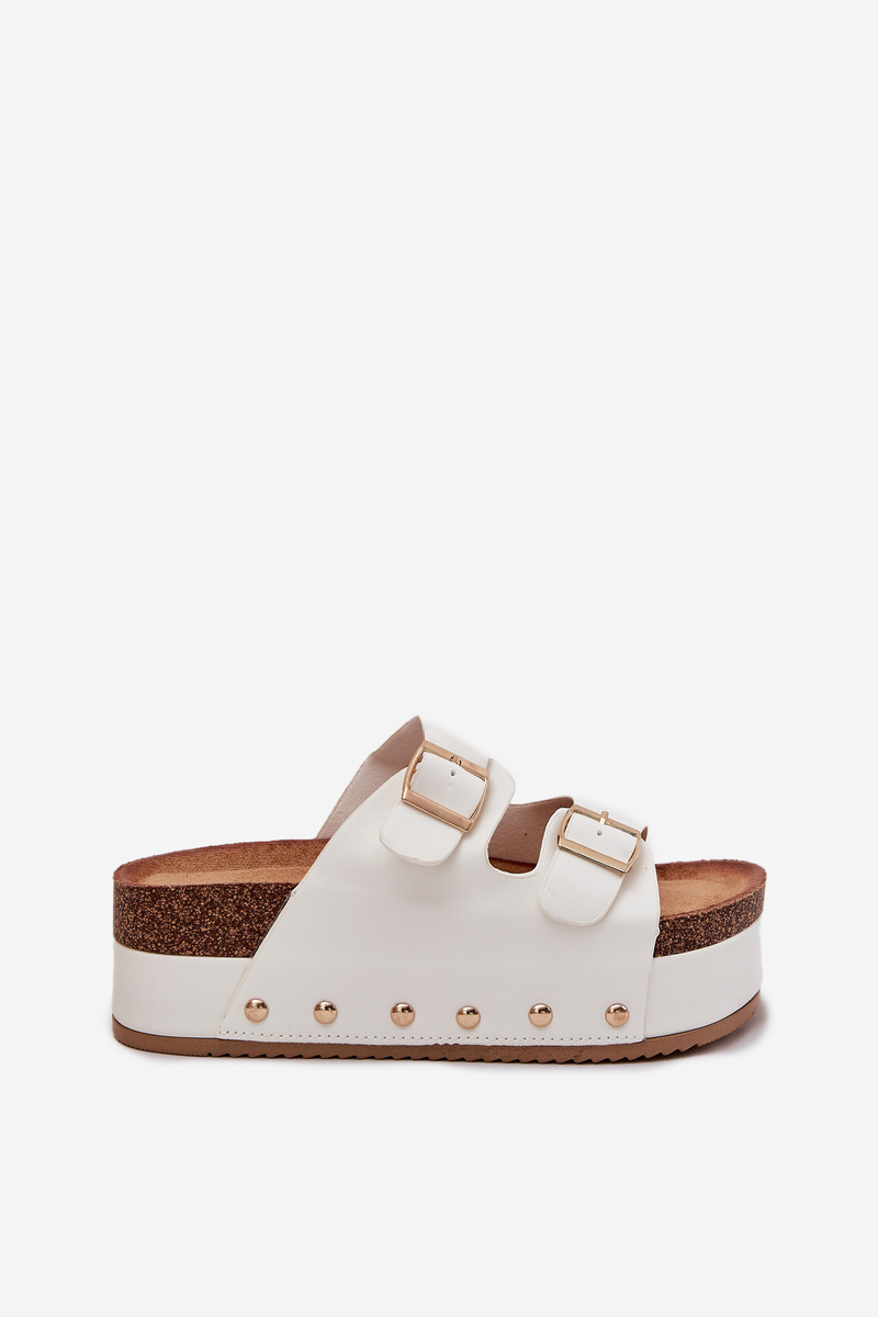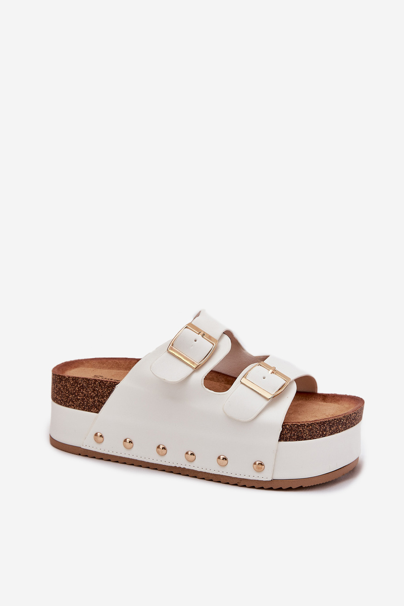 Klapki Damskie Z Klamrami Na Masywnej Platformie Białe Odisene
