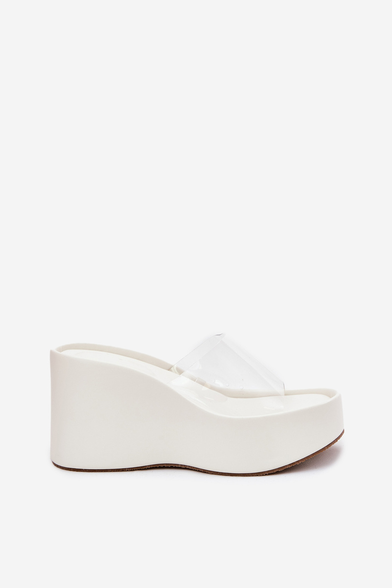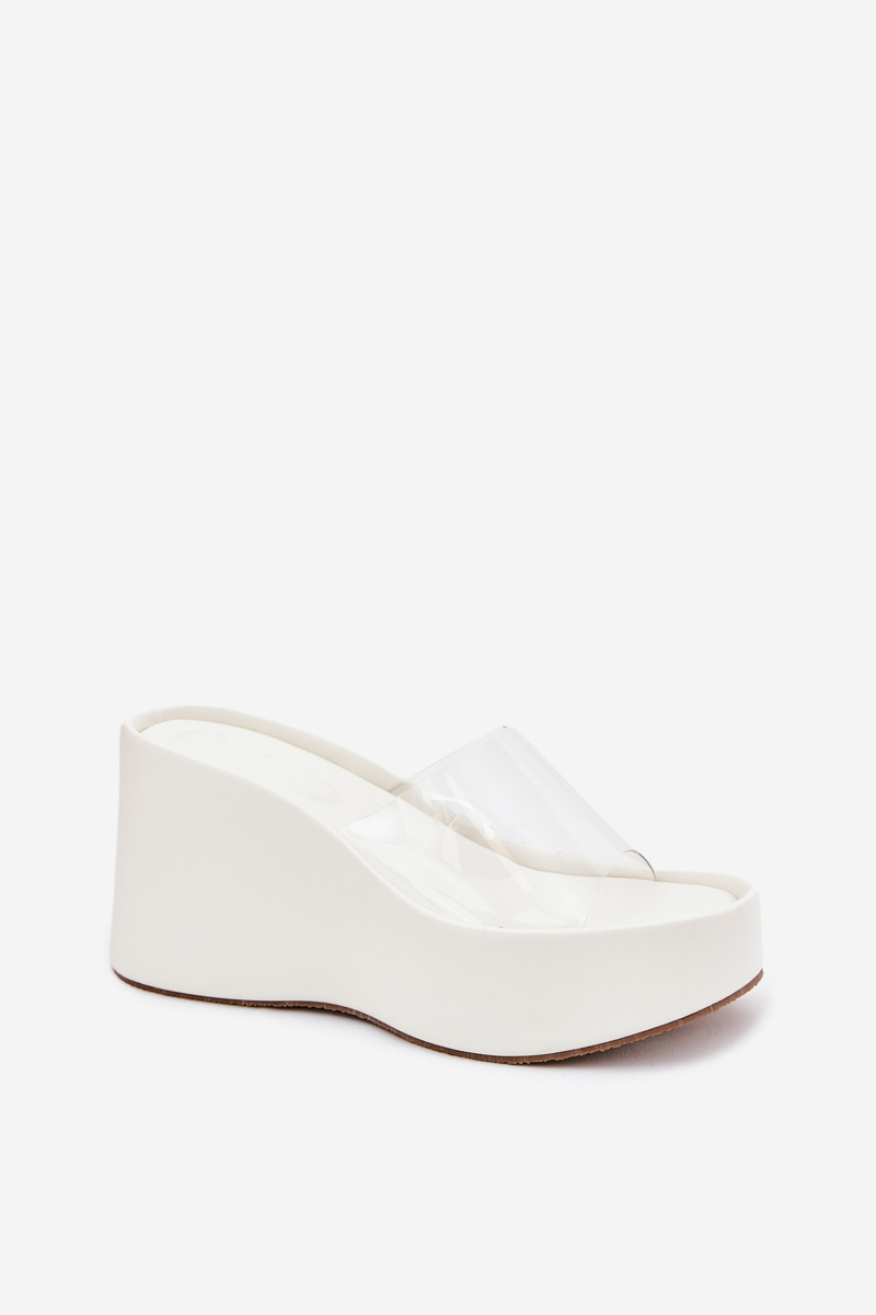 Klapki Damskie Na Koturnie Z Transparentnym Paskiem Białe Zolretia