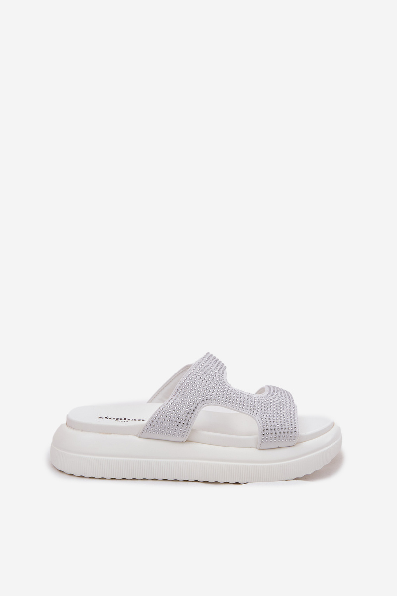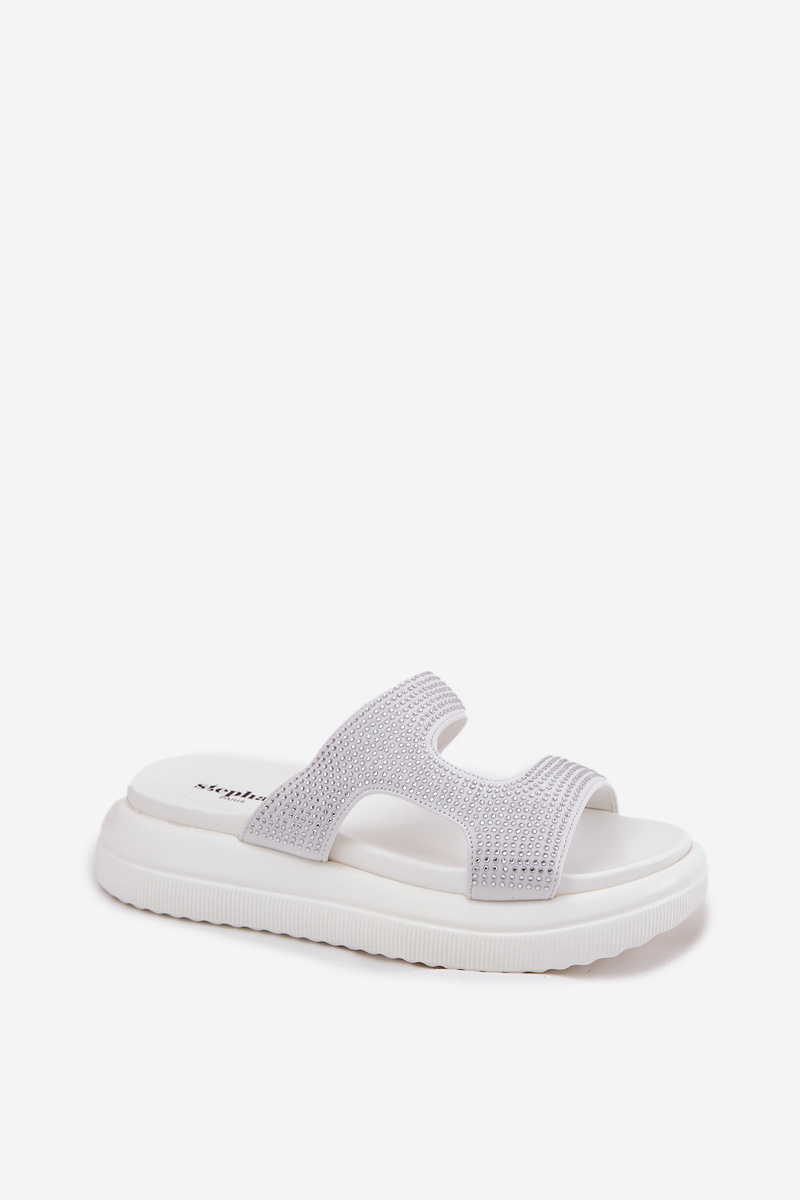 Zdobione Klapki Damskie Na Platformie Białe Jestella