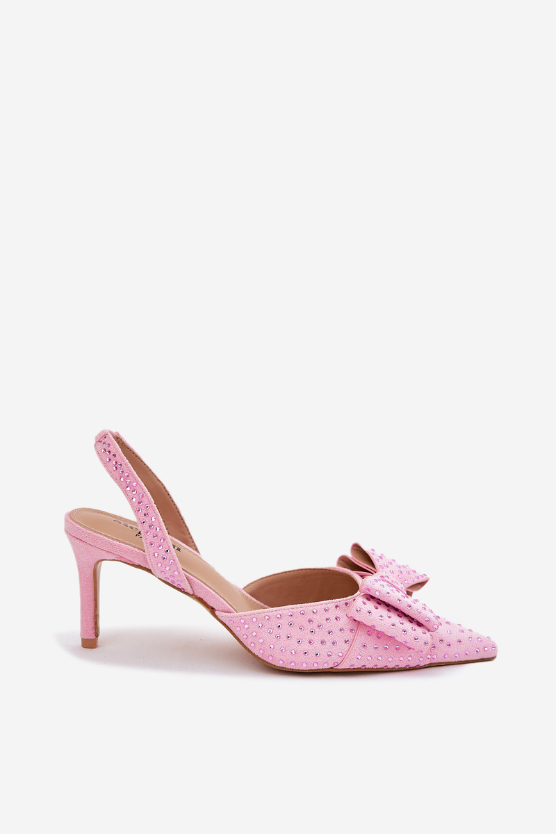 Zdobione Szpilki Z Odkrytą Piętą I Kokardką Różowe Nilandriela