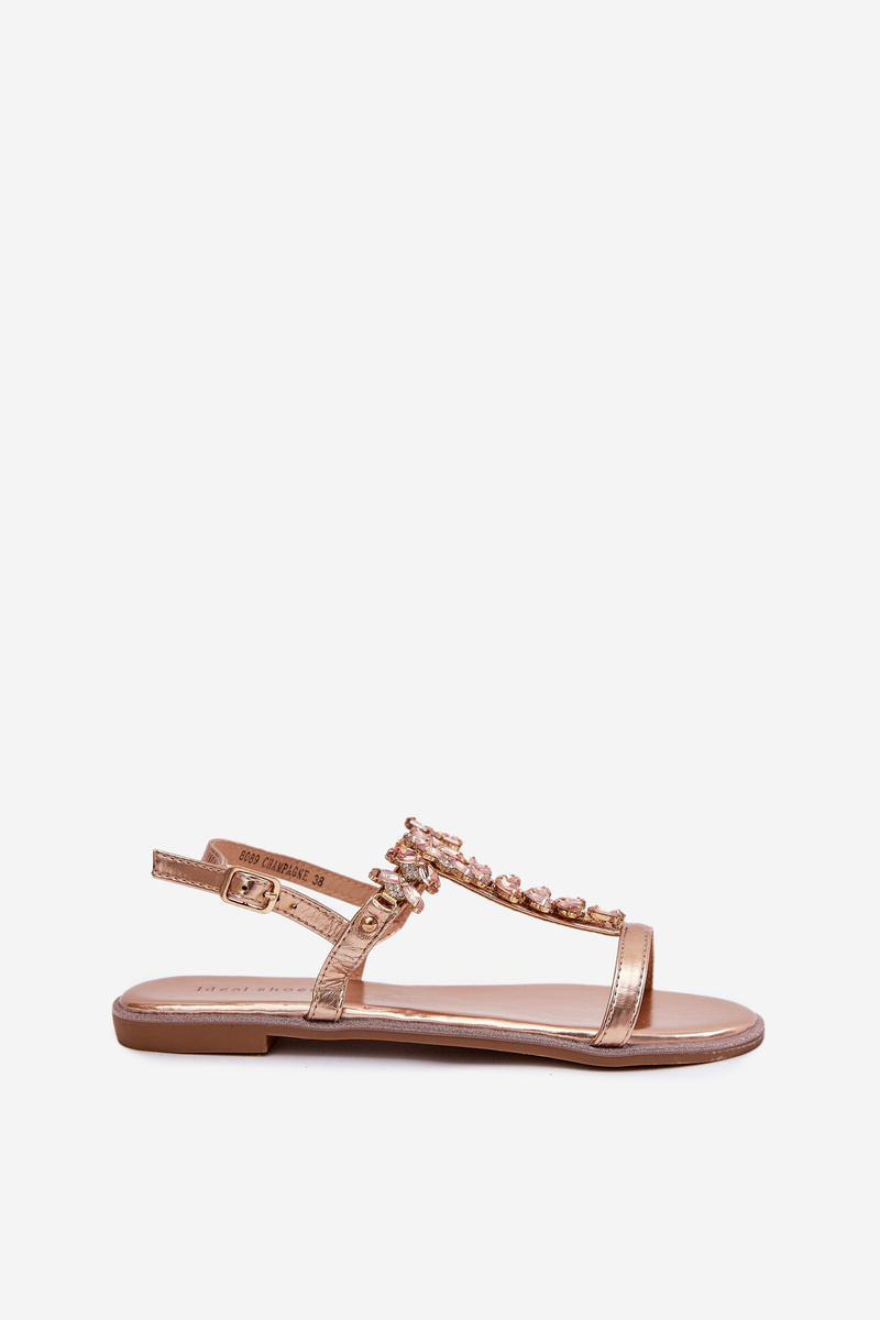 Sandały Damskie Płaskie Z Kryształkami Różowe Złoto Saane