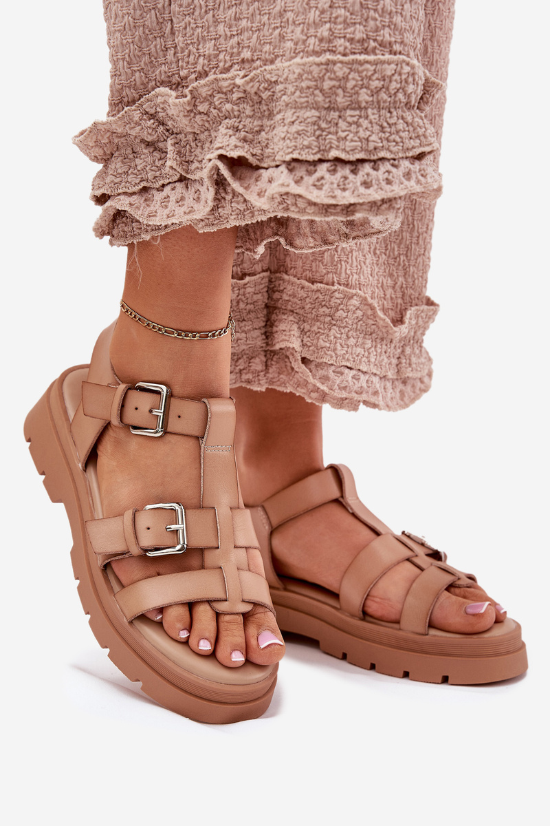 Sandały Damskie Eko Skórzane Z Klamrami Khaki Jeneliena