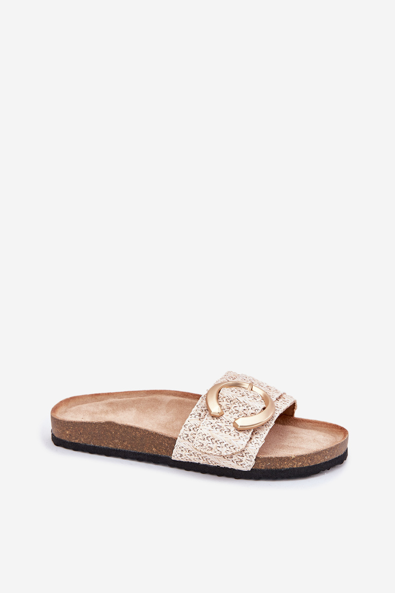 Klapki Damskie Na Korkowej Platformie Ze Złotą Klamrą Beżowe Nilaviena