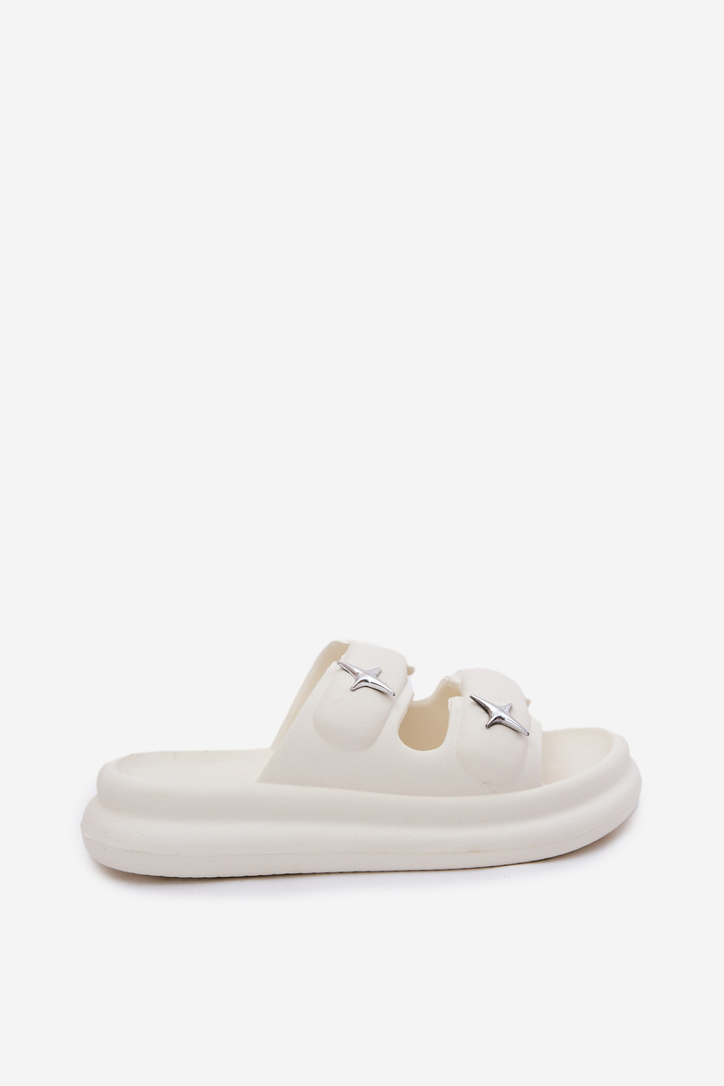 Piankowe Klapki Damskie Na Platformie Ecru Falowena