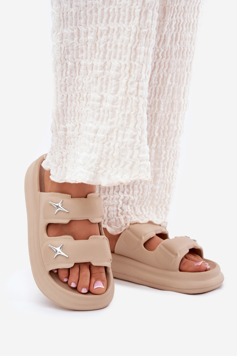 Piankowe Klapki Damskie Na Platformie Ciemnobeżowe Falowena