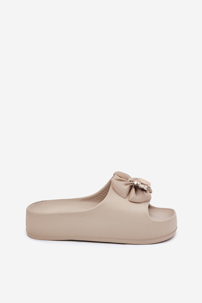 Klapki Damskie Piankowe Na Platformie Z Kokardką I Broszką Ciemnobeżowe Marlize