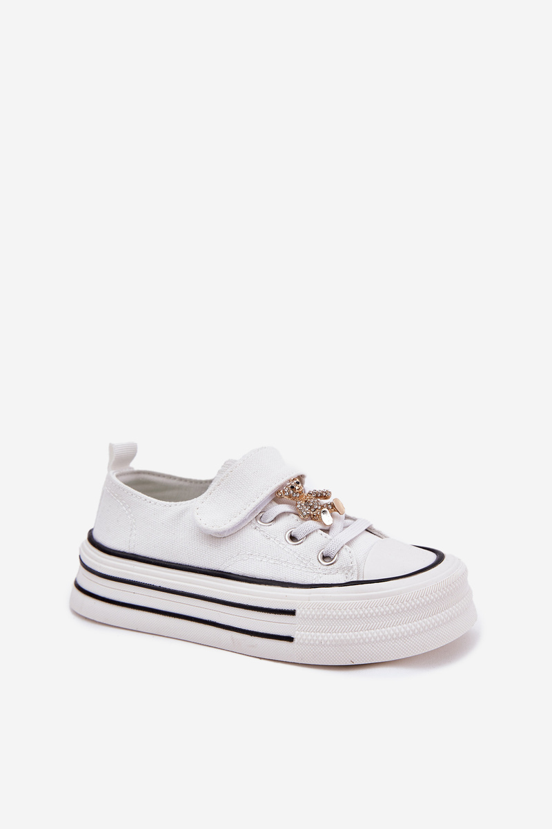 Dziewczęce Trampki Ze Złotą Przypinką Miś Białe Solena