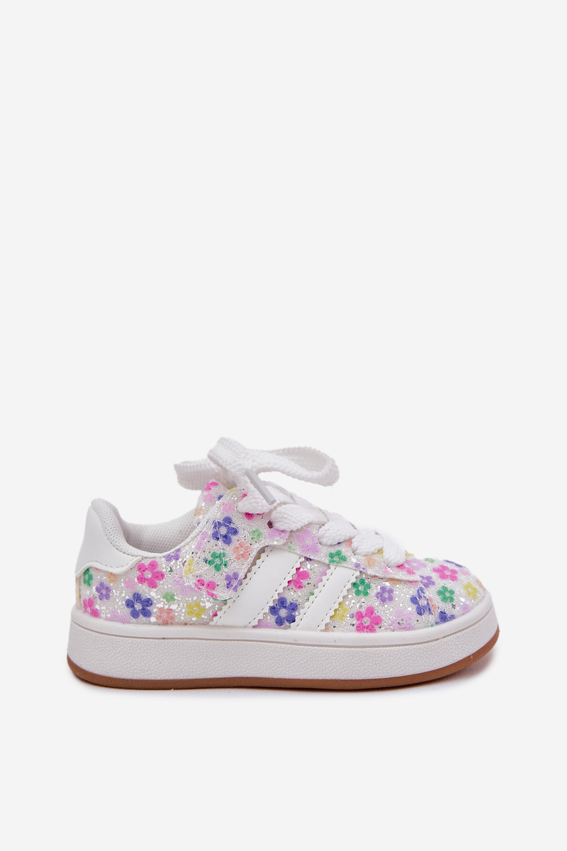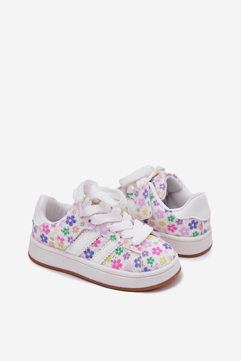 Błyszczące Buty Sportowe Dziewczęce W Kwiatuszki Białe Tessina