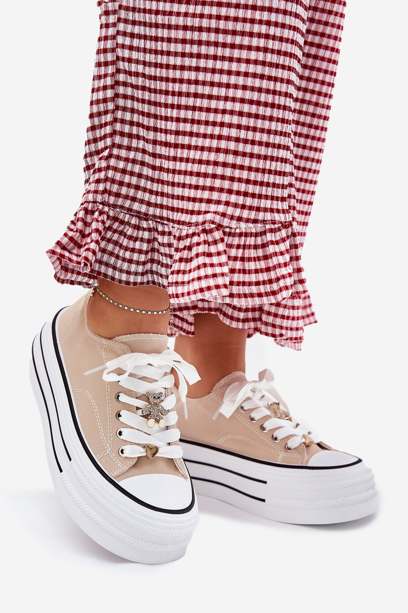 Trampki Damskie Na Platformie Ze Złotymi Przypinkami Beżowe Fiorina