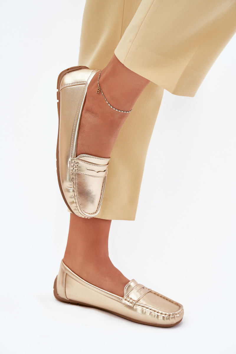 Damskie Eko Skórzane Mokasyny Złote Lenvie