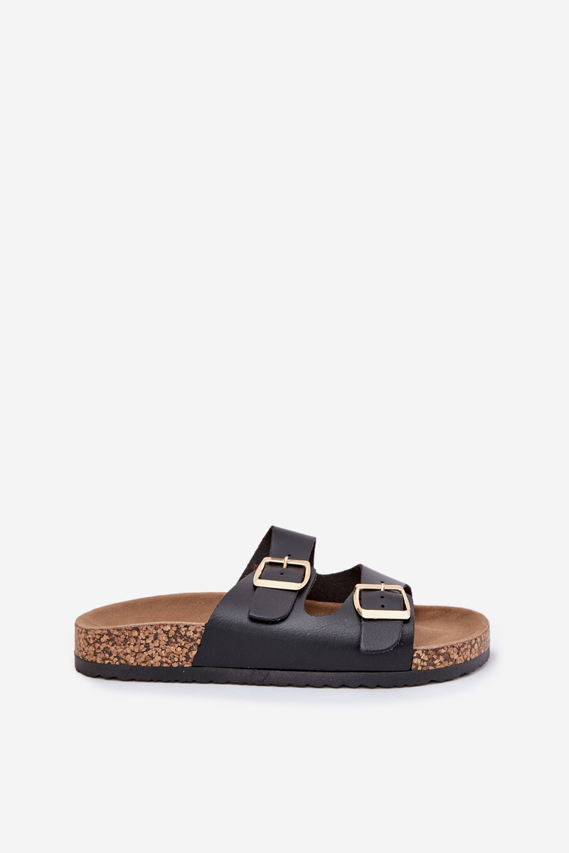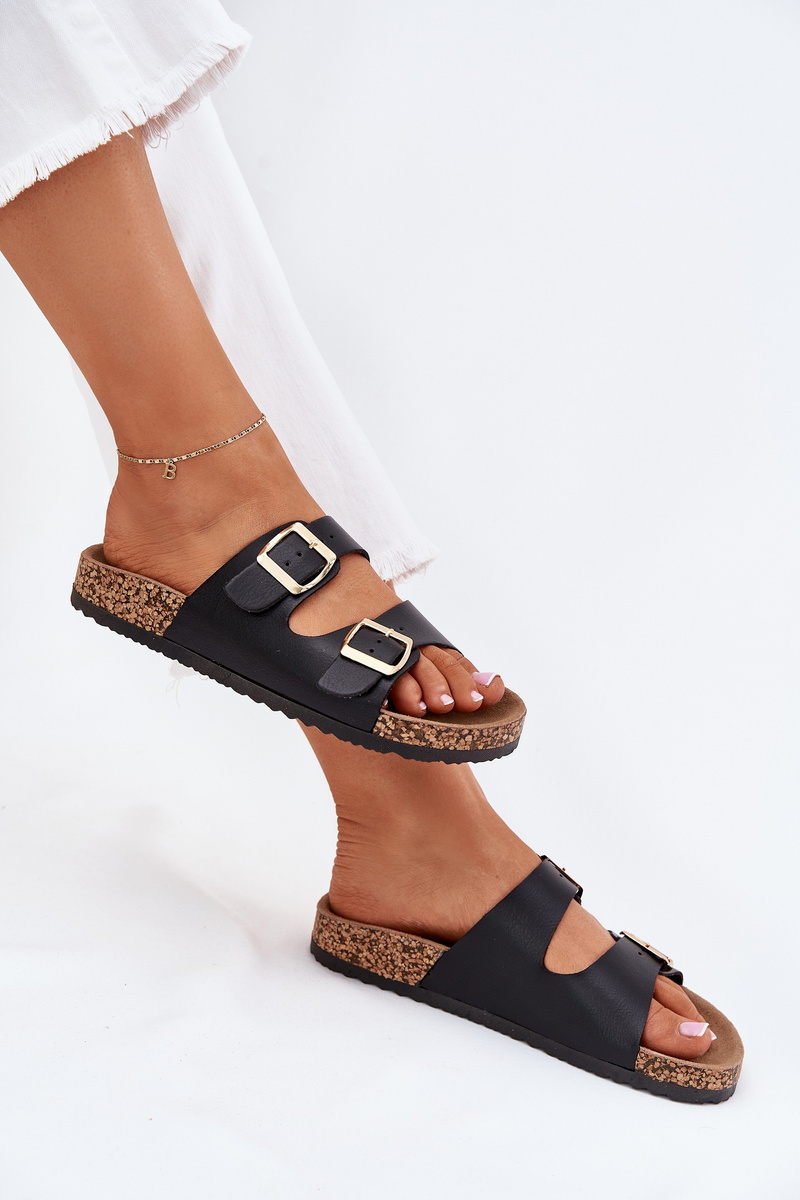 Klapki Damskie Z Klamrami Z Eko Skóry Czarne Iskira