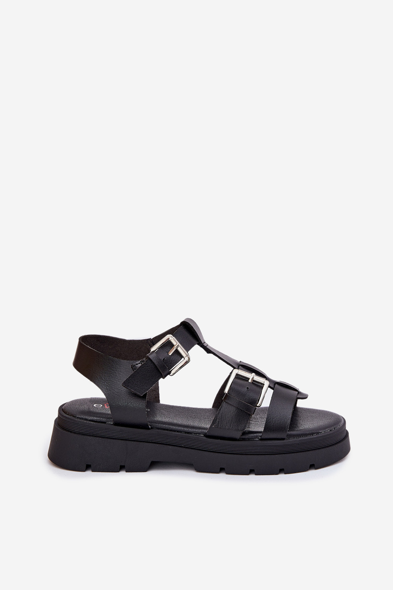 Eko Skórzane Sandały Damskie Z Klamrami Czarne Mireza