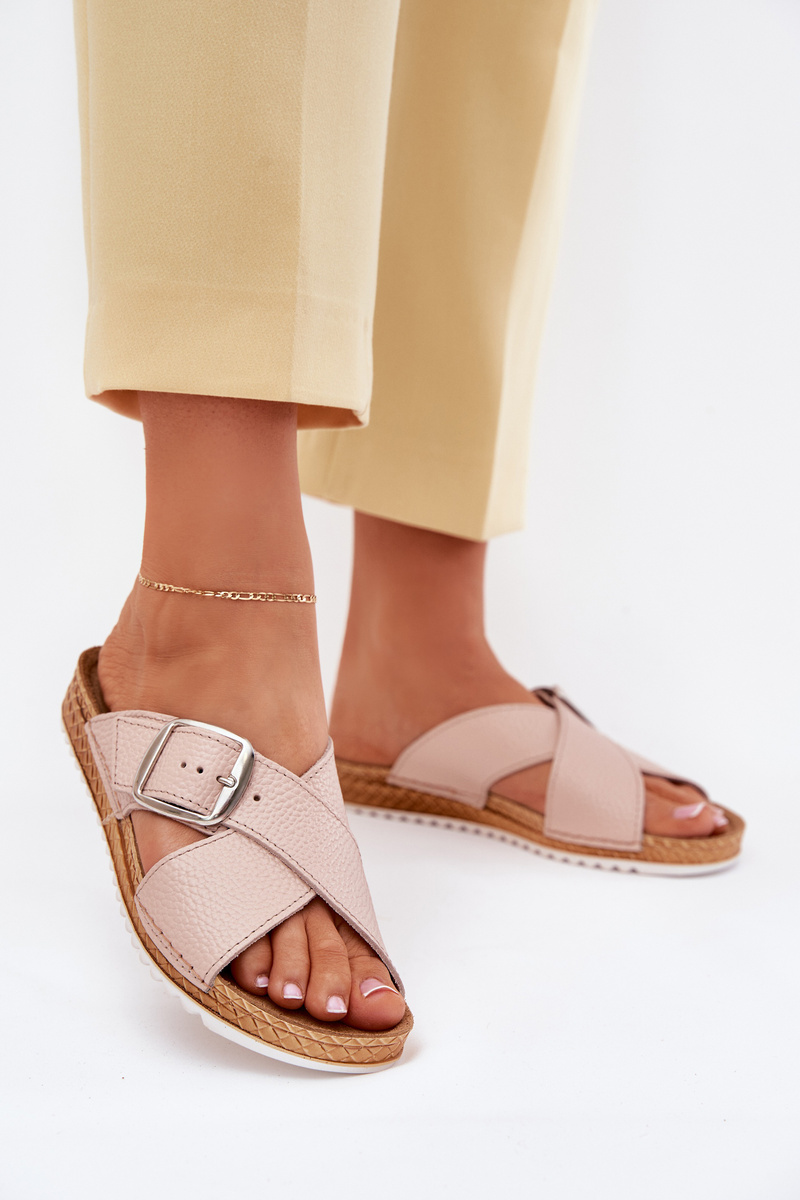 Skórzane Klapki Damskie Z Klamrą Inblu VO0004GU Różowe