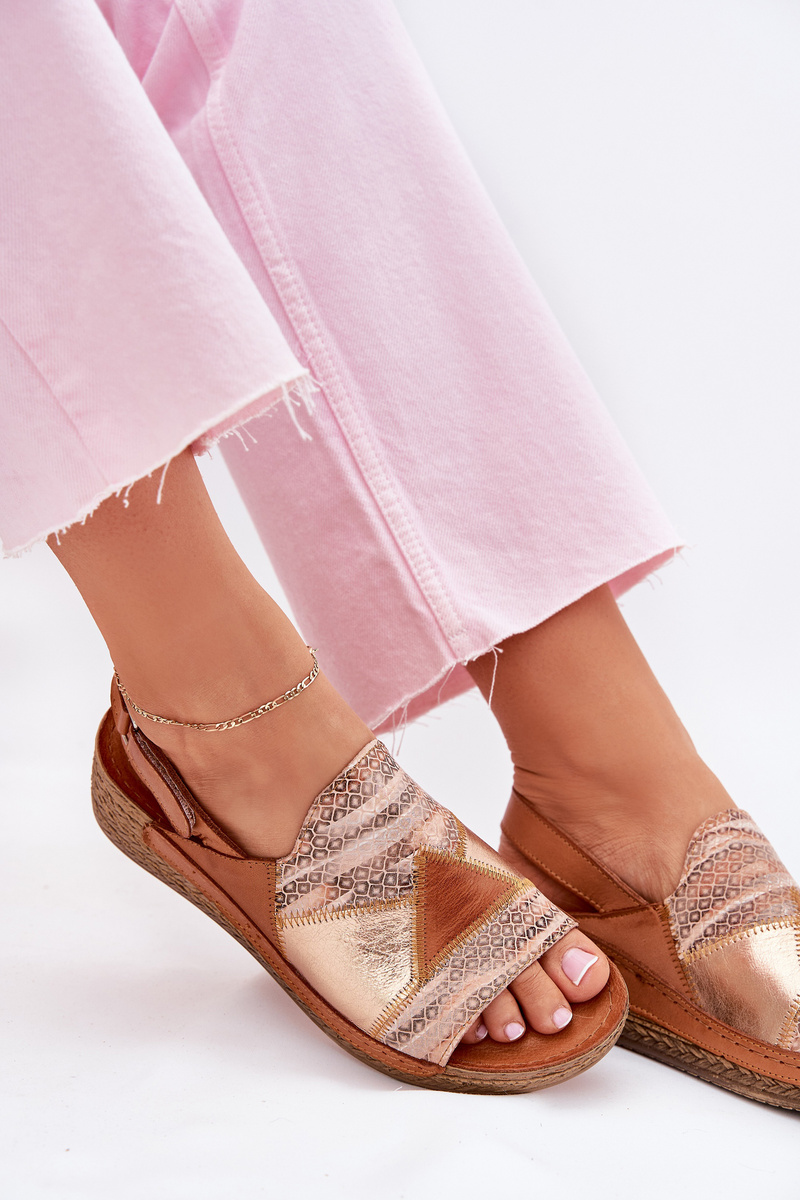 Skórzane Sandały Damskie Na Koturnie Z Plecionką Maciejka L7067-29 Brązowe