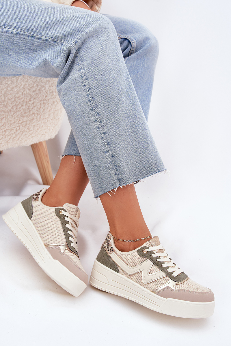 Sneakersy Damskie Na Platformie Panterka Beżowe Kelsia
