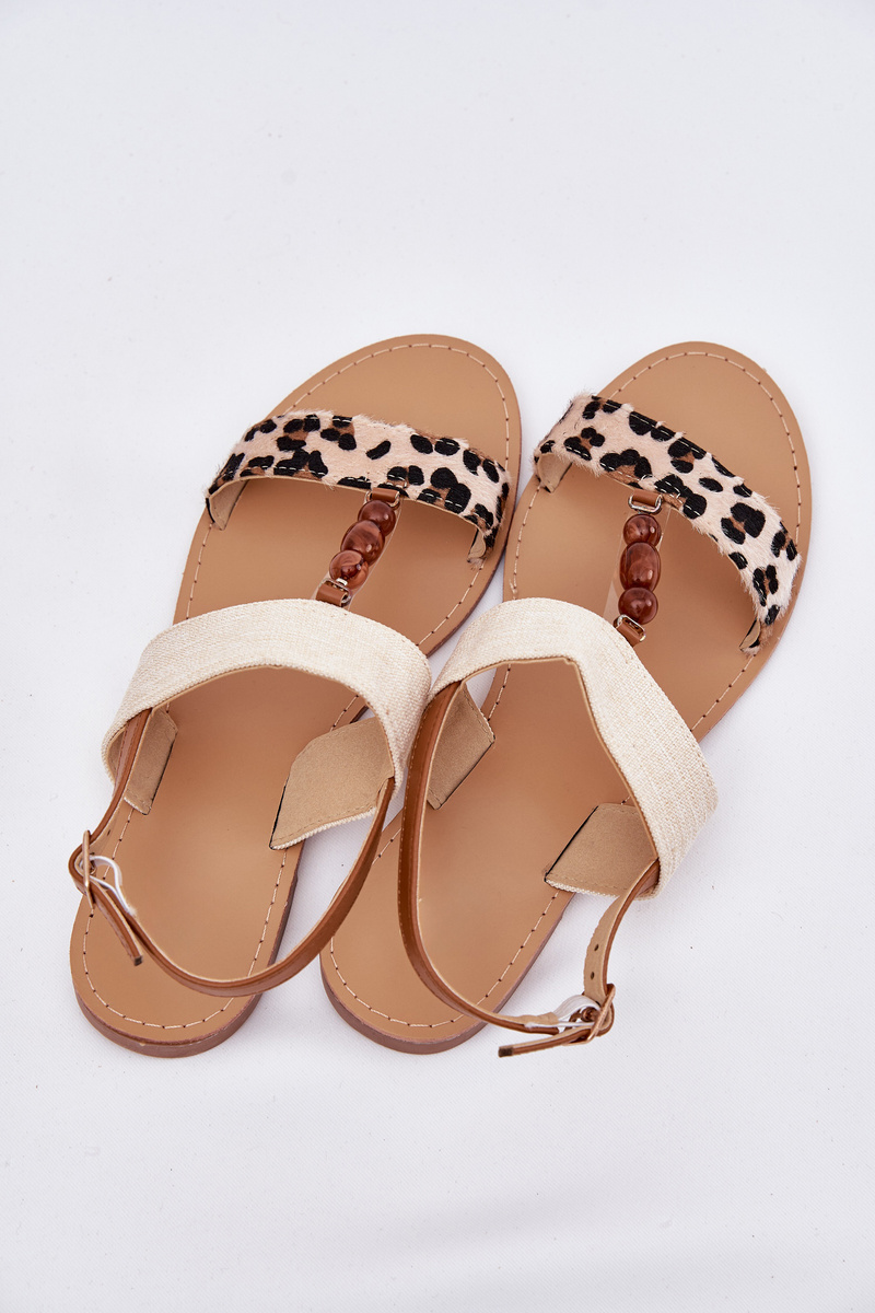 Płaskie Sandały Damskie Z Koralikami Panterka Beżowe Virona