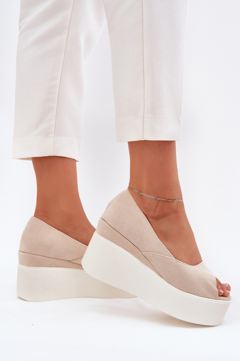 Sandały Damskie Na Koturnie I Platformie Jasnobeżowe Felyra