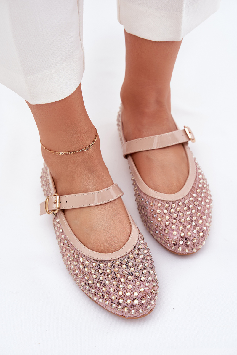 Zdobione Baleriny Damskie Z Paskiem I Klamrą Beżowe Avirae