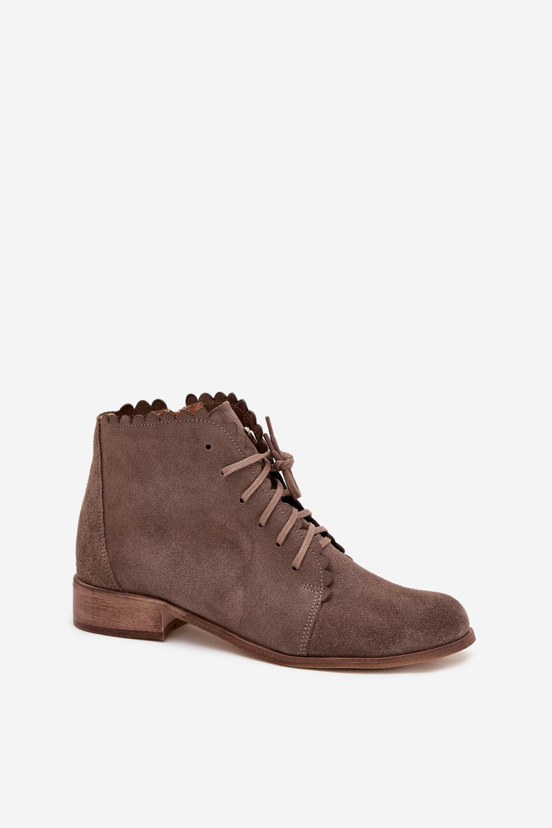 Zazoo 2964 Zamszowe Botki Na Płaskim Obcasie Ciemnobeżowe
