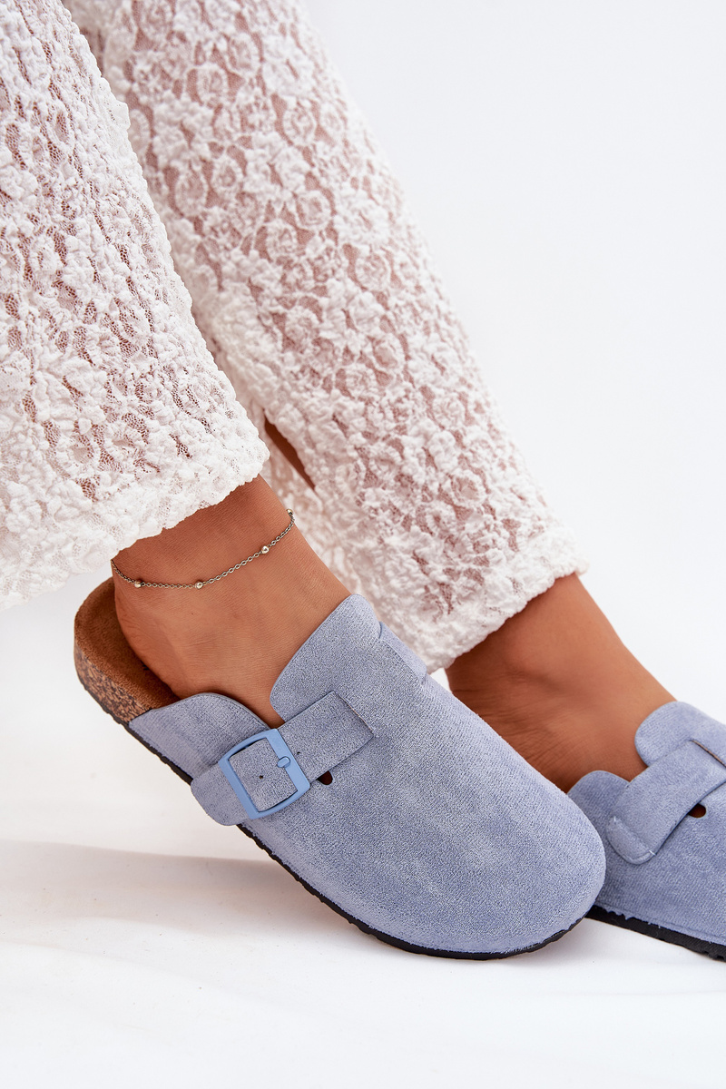 Klapki Chodaki Damskie i Na Korkowej Platformie Z Klamrą Niebieskie Klarae
