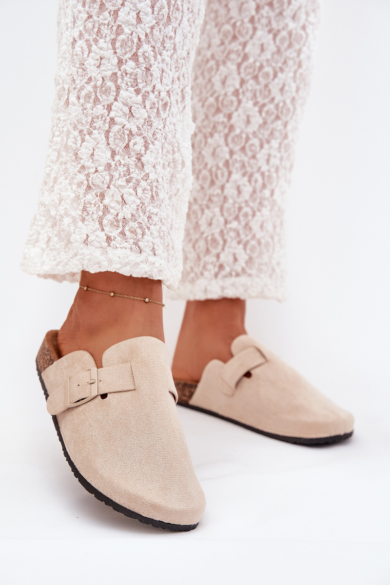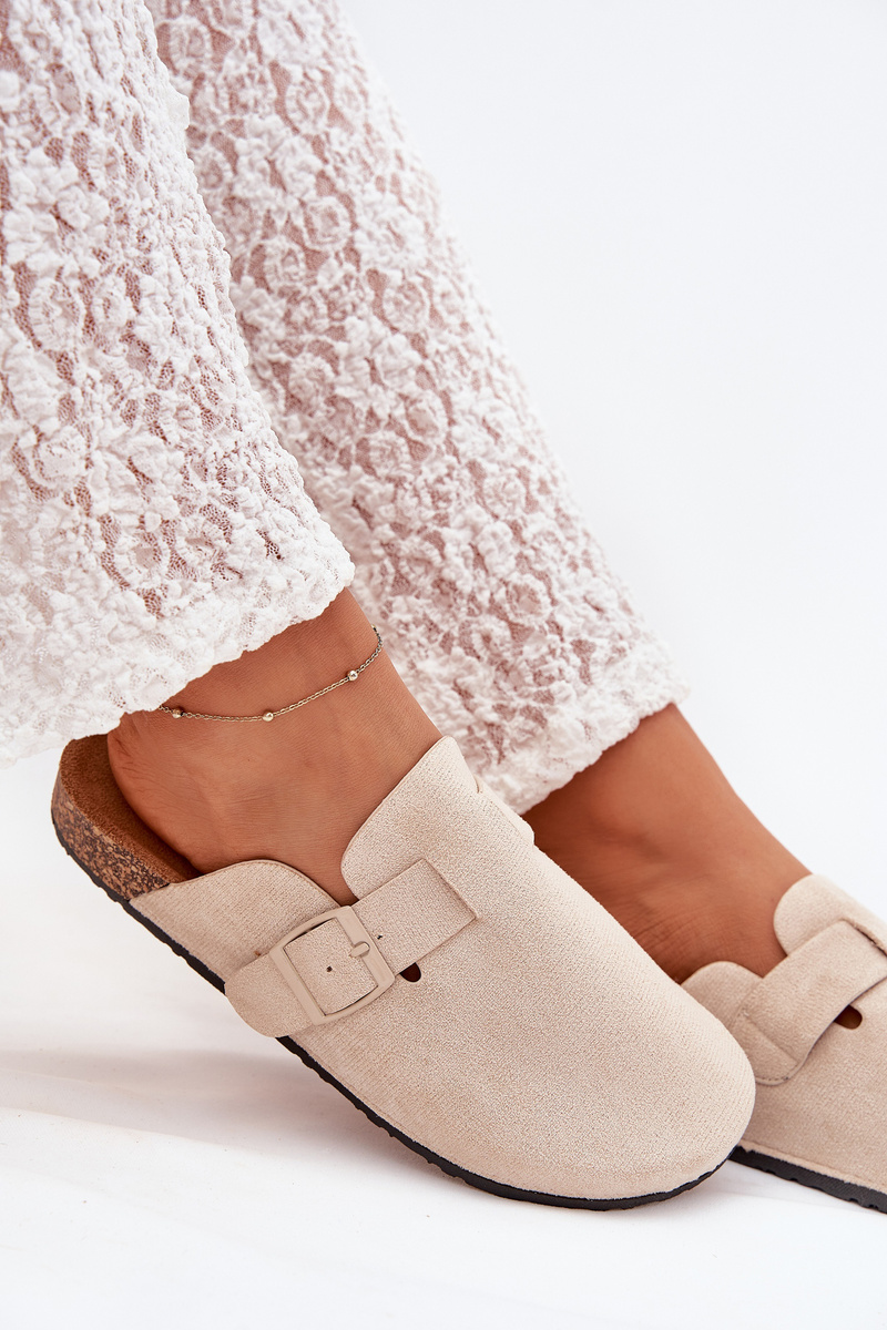 Klapki Chodaki Damskie i Na Korkowej Platformie Z Klamrą Jasnobeżowe Klarae