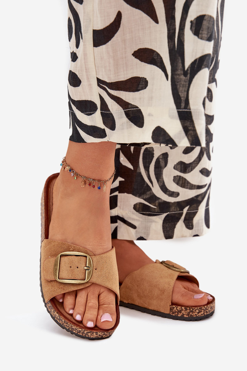 Klapki Damskie Z Klamrą Na Korkowej Platformie Camel Zavira
