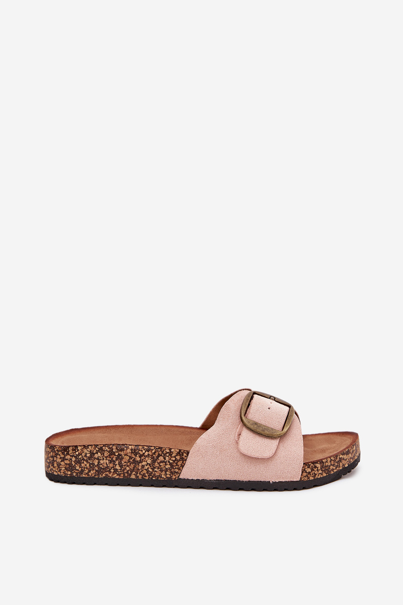 Klapki Damskie Z Klamrą Na Korkowej Platformie Różowe Zavira