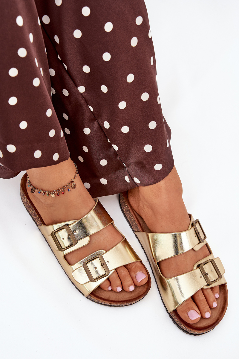 Damskie Klapki Na Korkowej Platformie Z Klamrami Złote Vesina