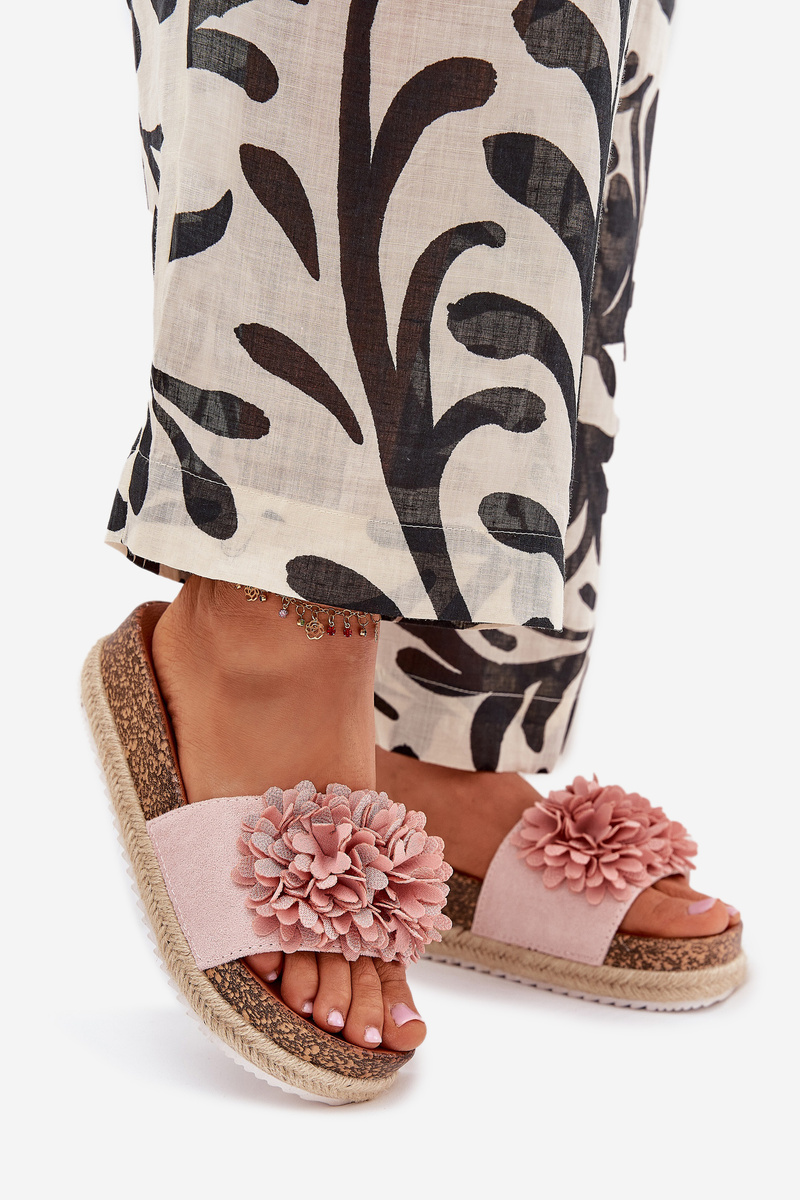 Klapki Damskie Na Platformie Z Ozdobnymi Kwiatkami Różowe Tessara