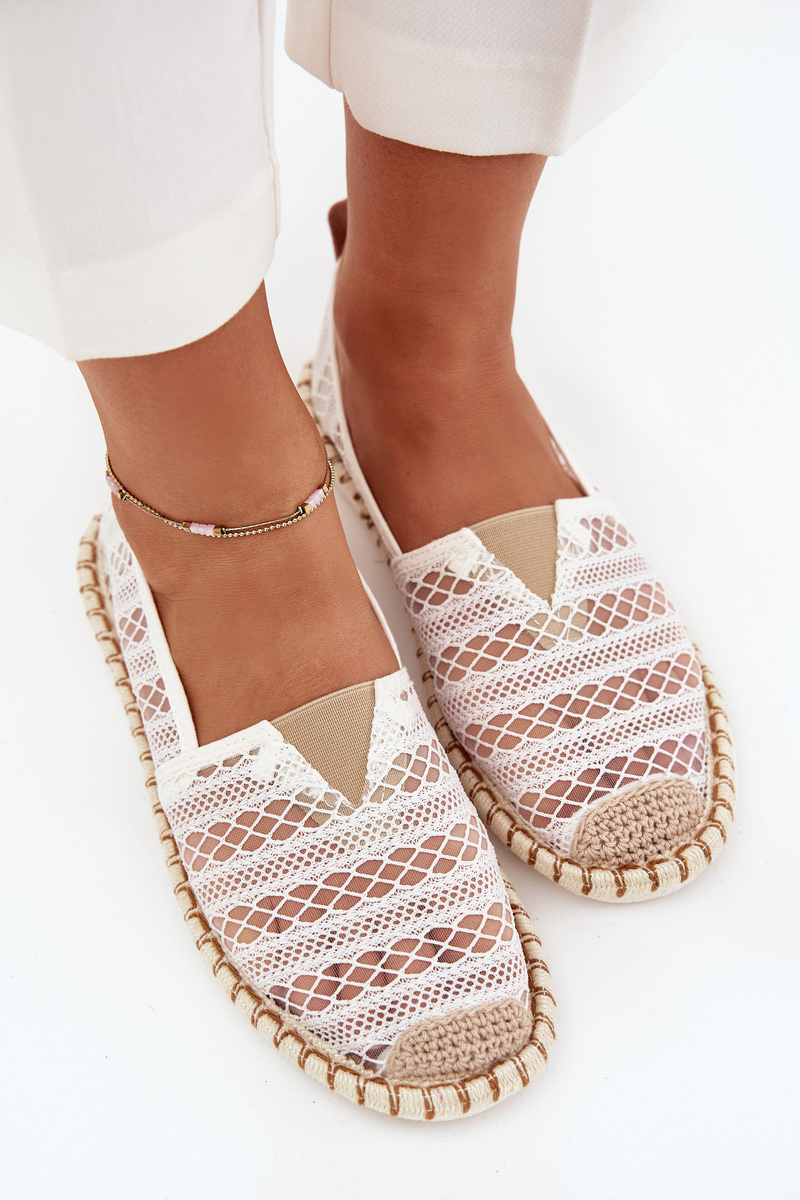 Koronkowe Espadryle Damskie Z Siateczką Białe Faylira