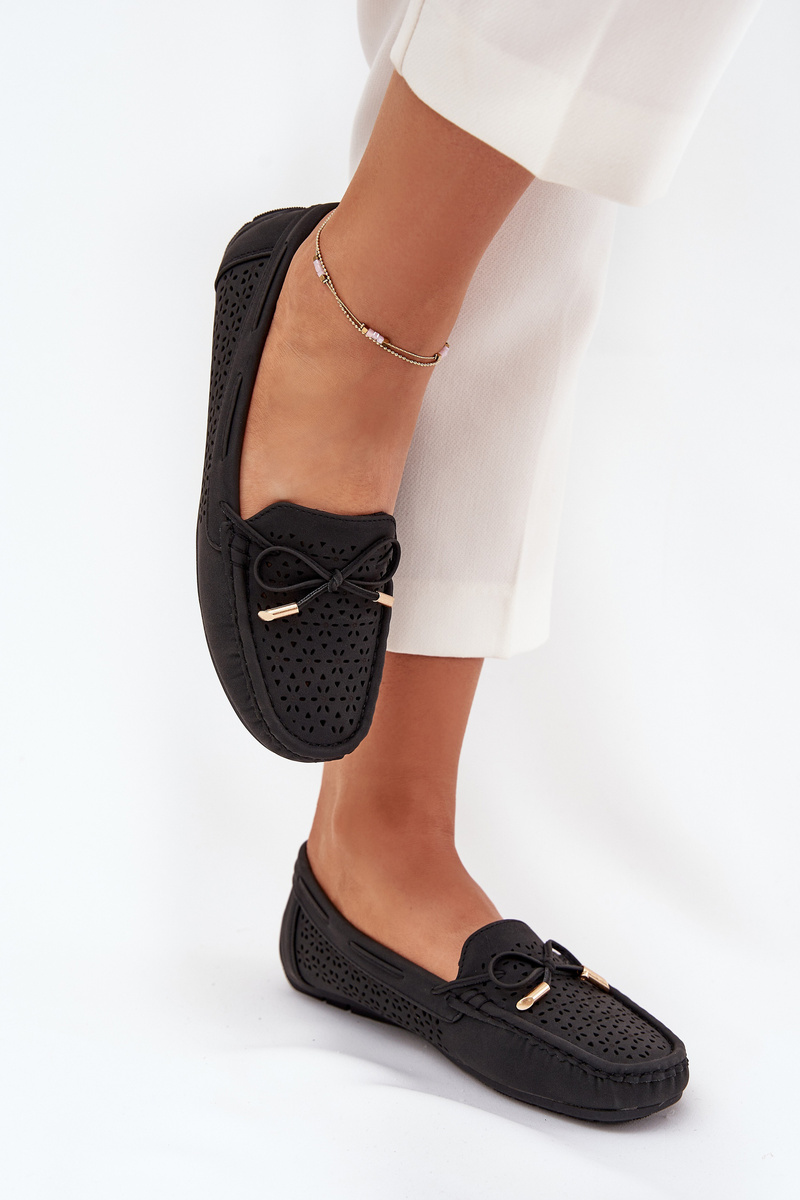 Mokasyny Damskie Z Ażurowym Wzorem I Wiązaniem Czarne Mirisa