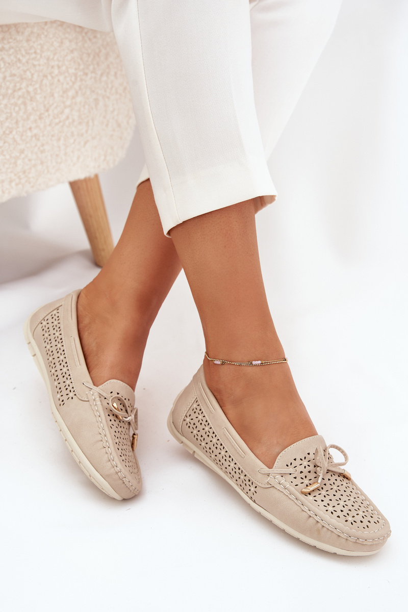 Mokasyny Damskie Z Ażurowym Wzorem I Wiązaniem Beżowe Mirisa
