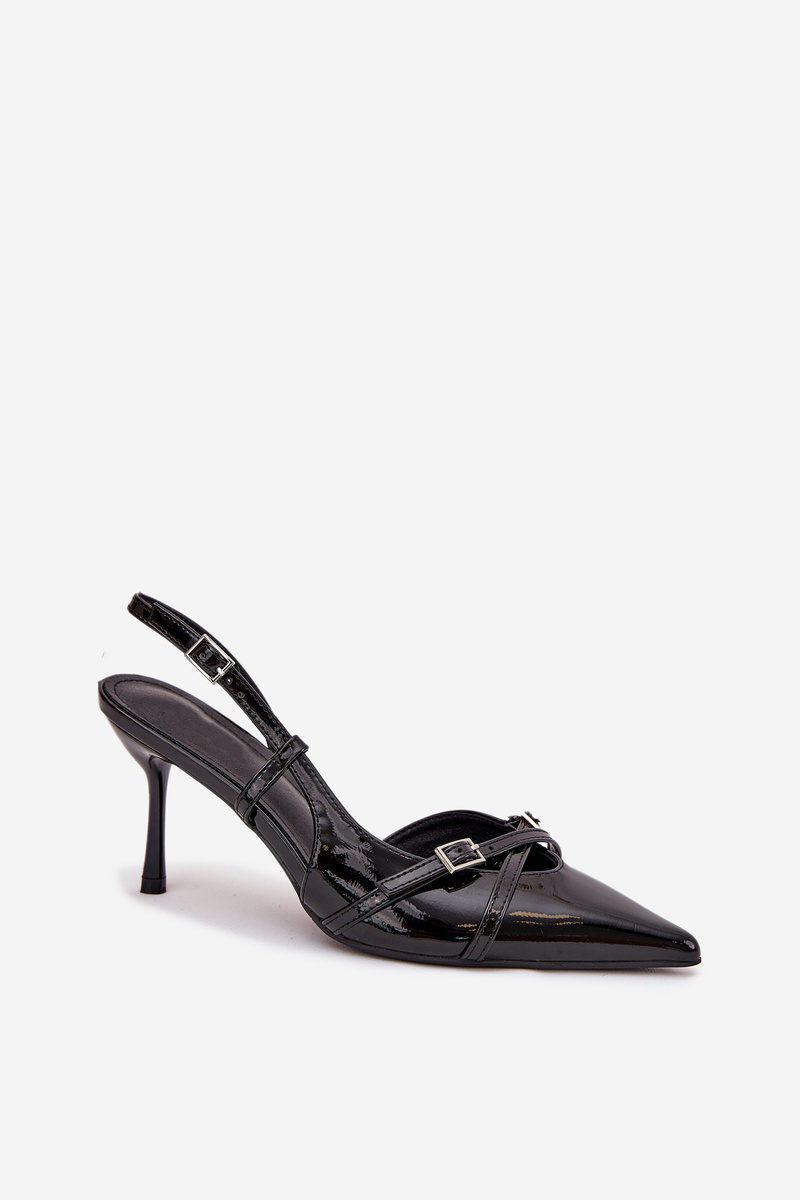 Lakierowane Czółenka Z Odkrytą Piętą I Paseczkami Czarne Ravira