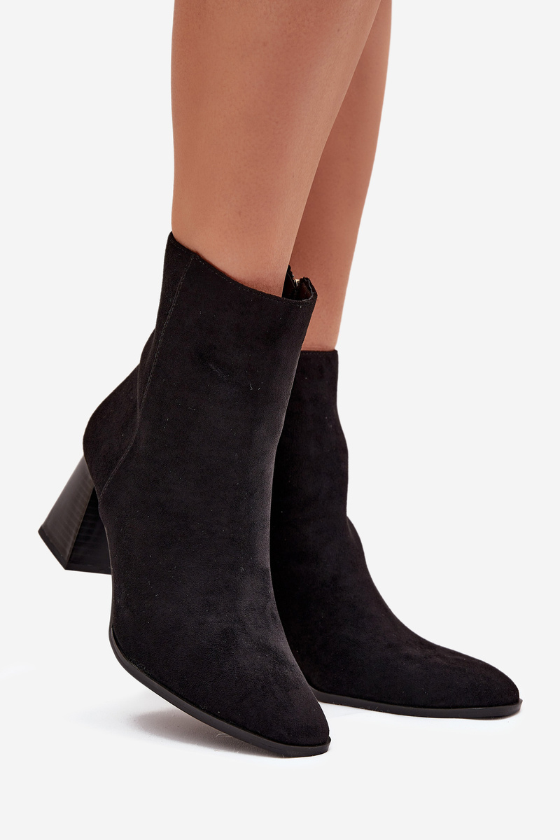 Botki Damskie Z Eko Zamszu Na Słupku Zamek Czarne Zelita