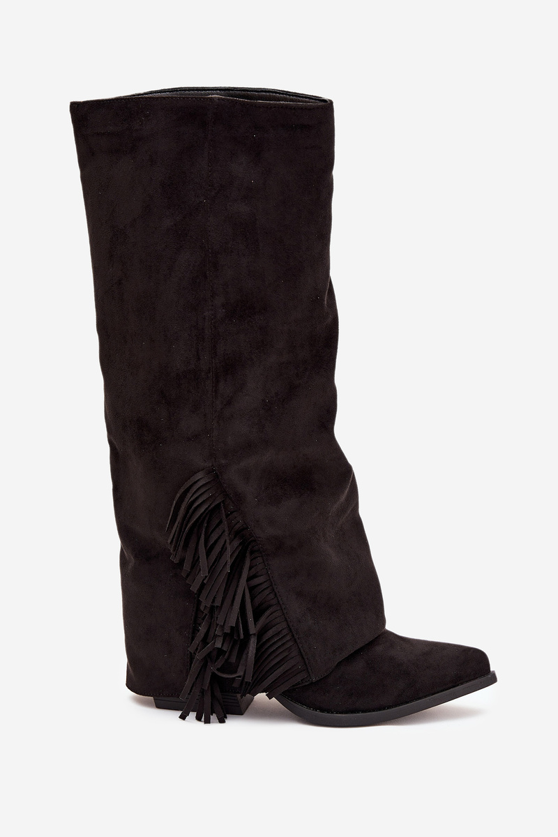 Wsuwane Kozaki Kowbojki Damskie Na Słupku Z Frędzlami Czarne Zalia