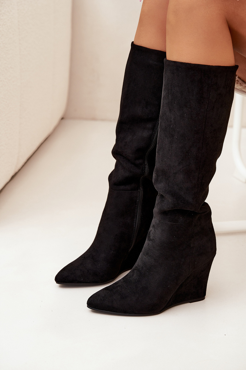 Ocieplane Kozaki Damskie Na Koturnie Czarne Rosina