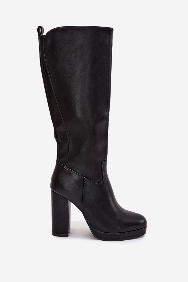 Kozaki Damskie Do Kolana Na Słupku Eko Skórzane Czarne Thalina