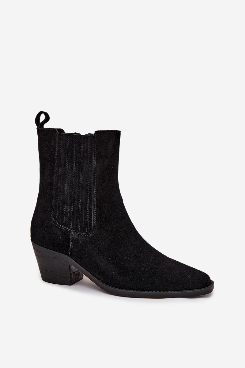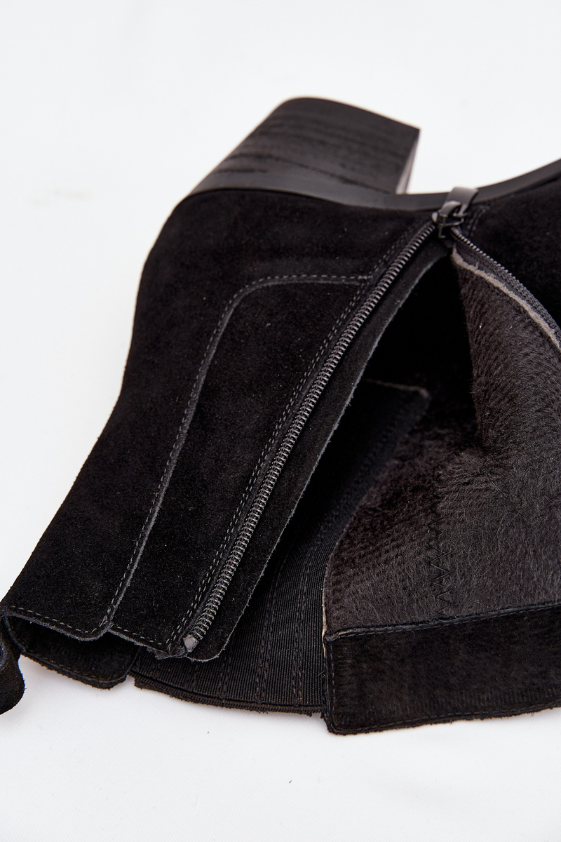 Zamszowe Botki Damskie Na Słupku Ocieplane Czarne Arelia