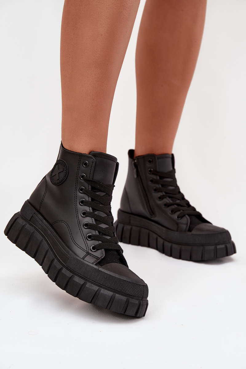 Ocieplane Wysokie Trampki Damskie Na Platformie Zamek Czarne Sarira