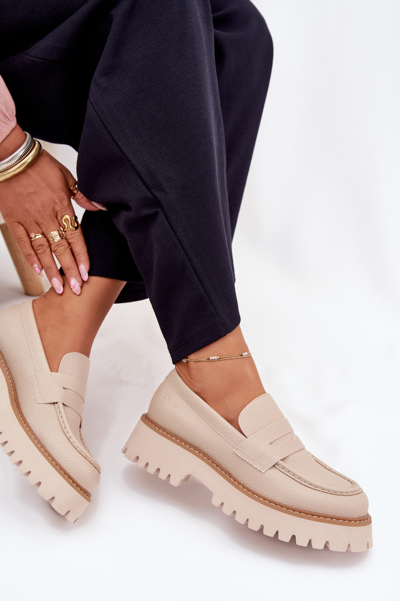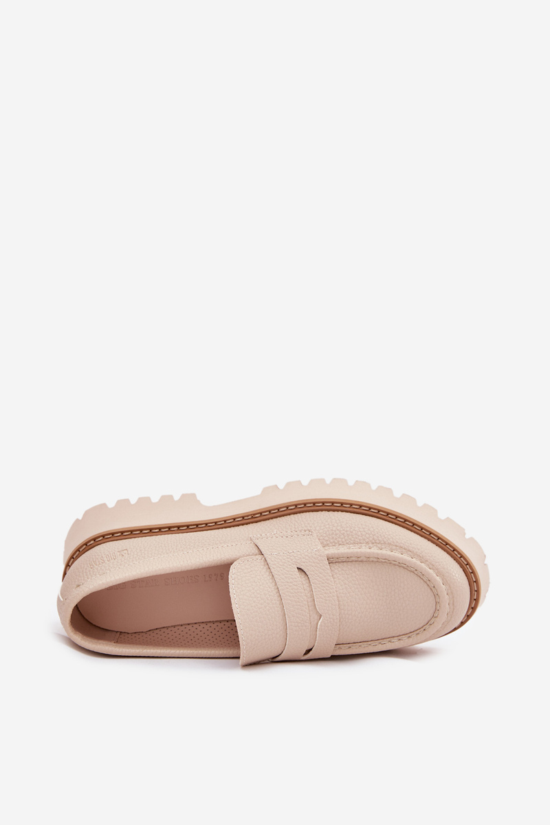 Mokasyny Damskie Na Platformie I Płaskim Obcasie Big Star NN274050 Beżowe