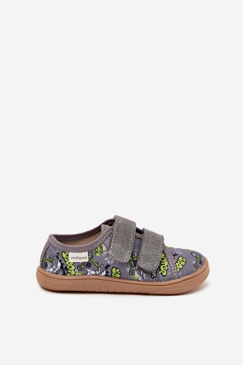 Kapcie Barefoot Chłopięce Z Grafiką Milami Szare Saphira